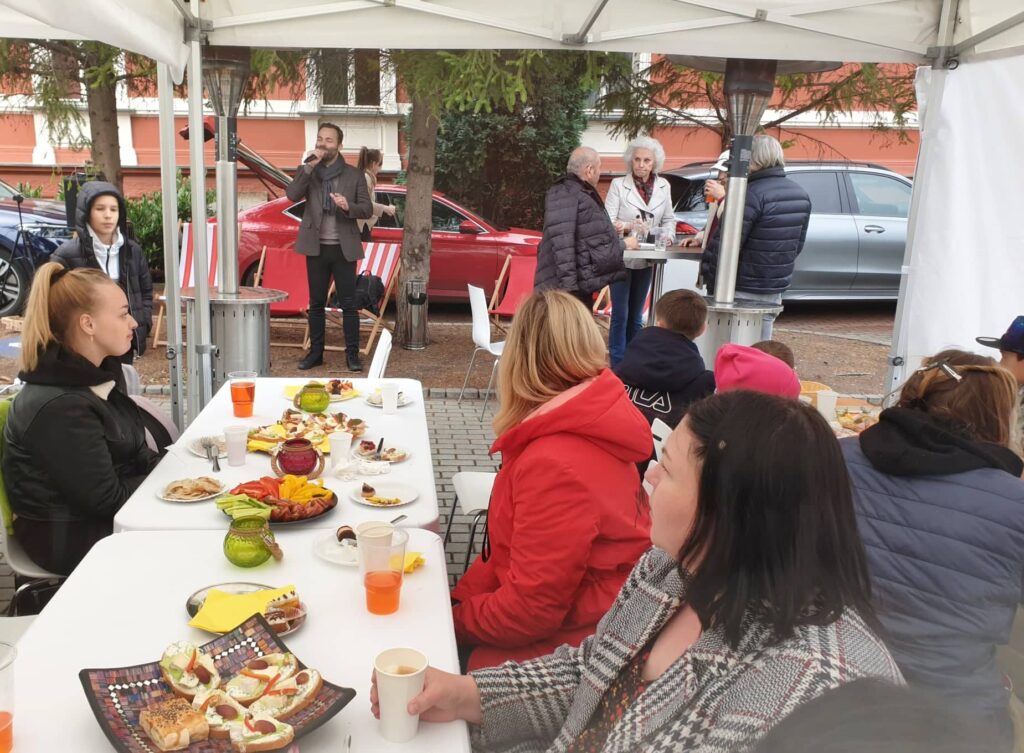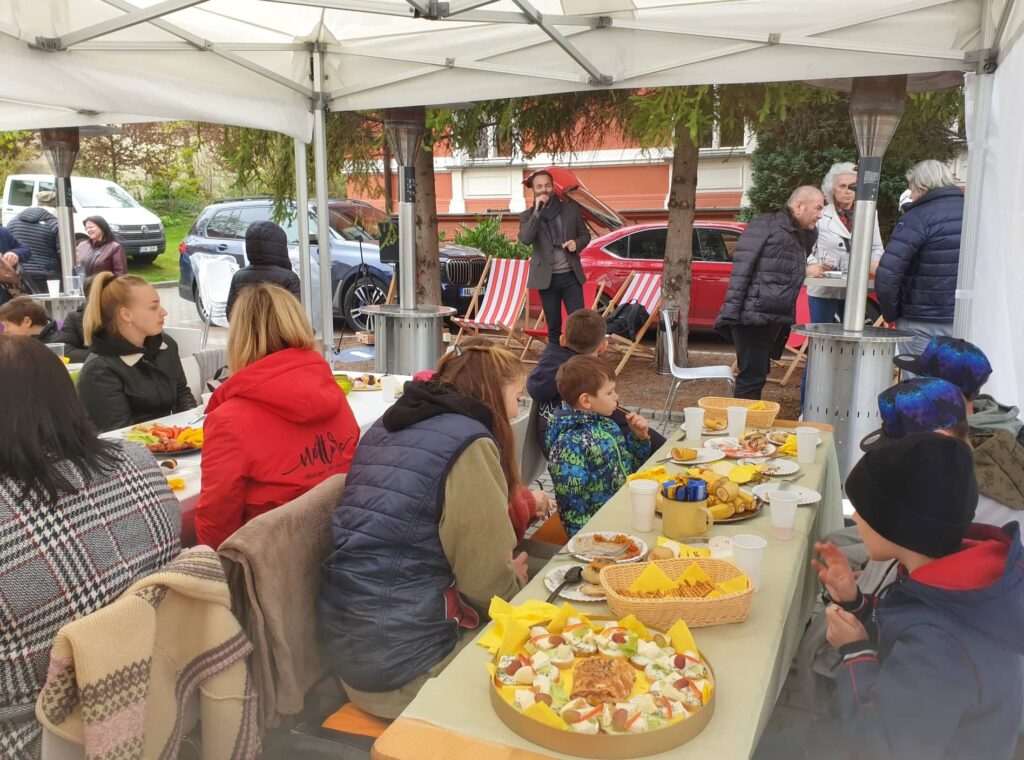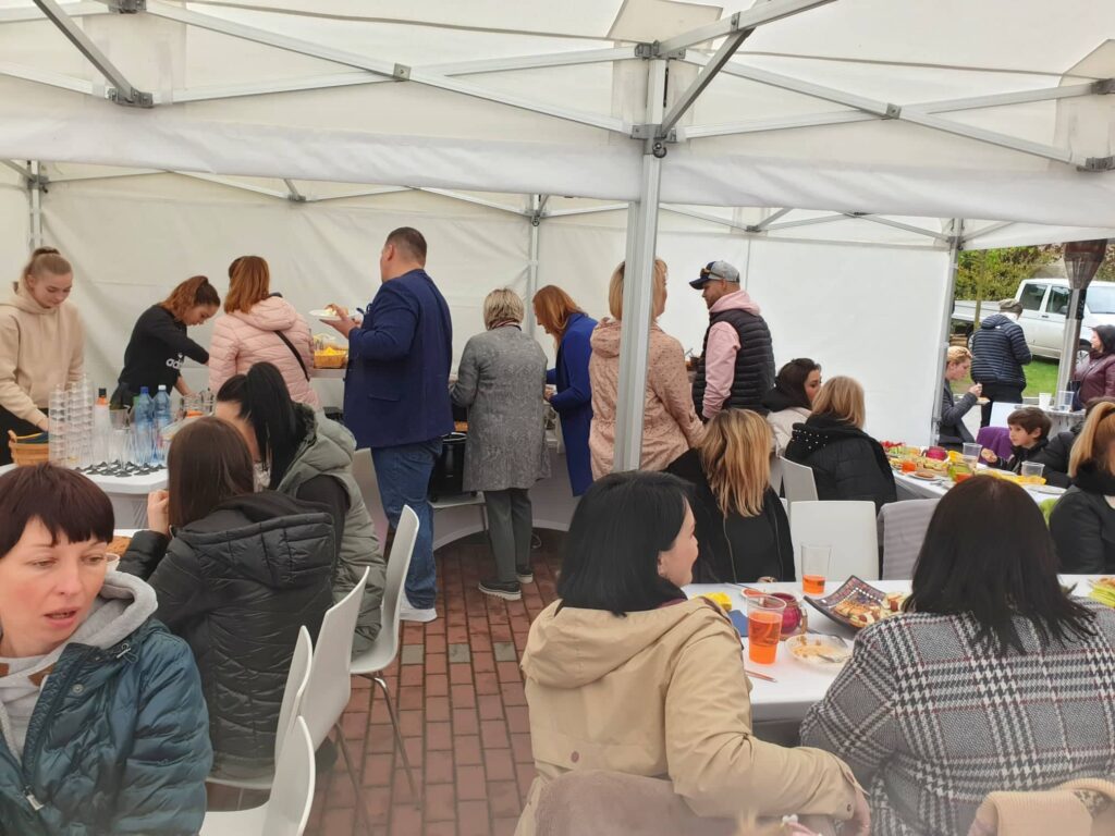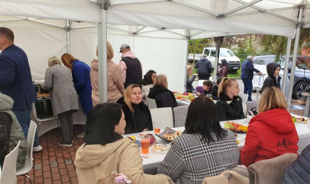 Následně pak proběhla příjemná zahradní slavnost, kde se setkali ti, kteří pomáhají s těmi, kterým je pomáháno. Cílem bylo propojení těchto dvou skupin, popovídat si a poznat se navzájem. Podávalo se mimo jiné i ukrajinské jídlo jako boršč, pampušky, holubce a vareniky s bramborovou náplní. Odpoledne se celkově vydařilo, a když přálo počasí, děti se rozutekly po zahradě a společně si hrály.